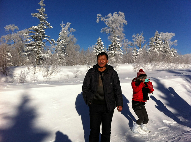 从雪乡到哈尔滨一般是中午的车,但是袁师傅看我们想快点离开,就答应早上9点离开。车子行驶不久,他告诉我们前面的风景很美,让我们下来拍照