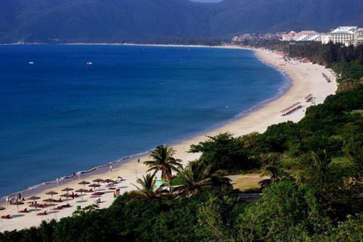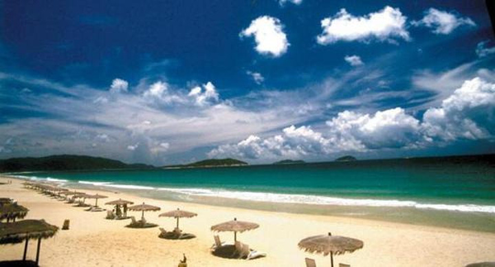 亚龙湾:位于三亚市东郊,距离市中心区仅约10公里。是一个月牙湾,拥有7千米长的银白色海滩,沙质相当细腻。而这里的南海没有受到污染,海水洁净透明,远望呈现几种不同的蓝色,而水面下珊瑚种类丰富,可清楚观赏珊瑚,适合多种水面下活动包括潜水等,令海底成为了当地的旅游的核心。