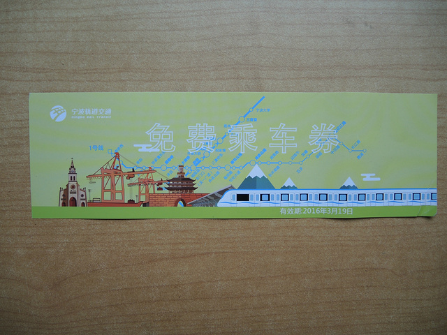 宁波的地铁免费乘车券,很实惠的惠民政策。赞一个!
