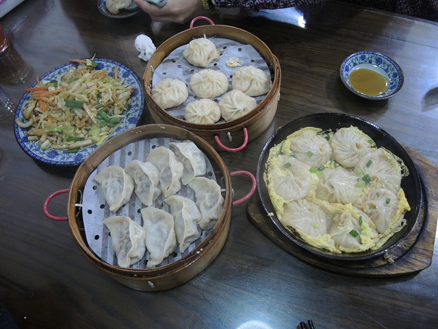 豆腐煎包,15元。这道小吃点的极其失败!其实就是小笼豆腐包换了个地方,和小笼包一样瘫坐在铺了一个鸡蛋液的平底煎锅里,改隔水蒸为直接煎而已。加了一个鸡蛋,就贵了5块大洋,很会做生意呀!味道和小笼豆腐包一模一样,就是包子底儿稍微硬了一点,可是煎的功夫不到家,有点粘锅,很难夹起一个完整的包子来,几乎各个都漏了馅儿。如此看来,他家做包子的手艺还是油酥子发白——短练呀!