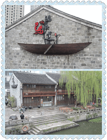 南塘老街北端的墙壁上挂着的这个划船的图标就可以算是南塘老街的一个标志性符号了;下图是一个小码头,可以在此戏水。