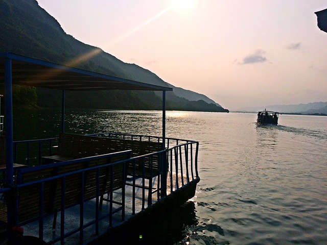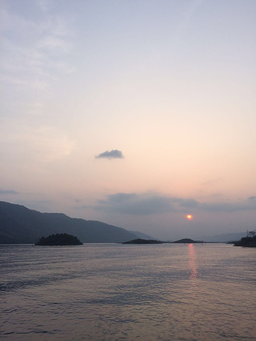 之后再坐船去恐龙岛,因为带孩子,已经没劲拍照了。返回时,手机拍了几张仙岛湖夕阳~~