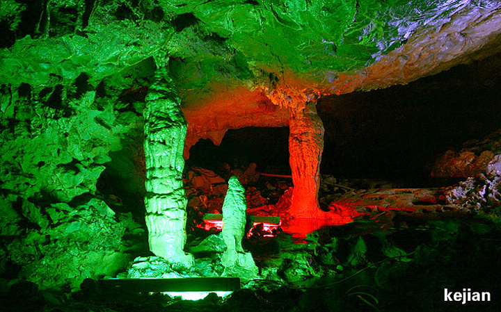 还有一条很长的钟乳石长廊,洞内水自成溪,凉爽宜人。钟乳石嘛!看不懂~~~