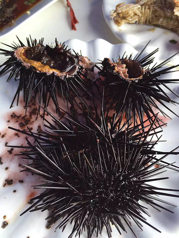 我们在岛上吃的第一顿就是海鲜,这里除了海鲜还是海鲜。对比了好久,在一个年轻老板的大排档前停下脚步,这个岛上的居民相当少,一般年轻人都出去闯,这里也没有学校,所以留下来的就是一些老人和做小生意的,一切看起来都相当原生态。不过这里的旅游开发是迟早的事,好多人家都在翻新屋子改造成旅馆。我觉得如果你喜欢原生态,那么东极肯定会让你沉醉。这里的海鲜是如此新鲜,海胆直接切开就可以吃,渔民自己捞的各种螺,清炒一下,嘴里丝丝清甜,梭子蟹葱油翻炒几下,出锅即美味,平日里不太喜欢吃蟹的我,也挡不住这种诱惑。