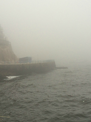 第二天清晨,是被外面的海浪声叫醒的,一看时间是早上4点多,还以为外面下雨了,拉开窗帘一看,没有雨,大雾,我的日出梦就这么破碎了。拉着先生硬是出去走了一圈,早上异常闷热,完全没有前一夜的凉爽,答案是肯定的,没有看到日出,但是有一个过程,留下一点小遗憾,也是美好的。