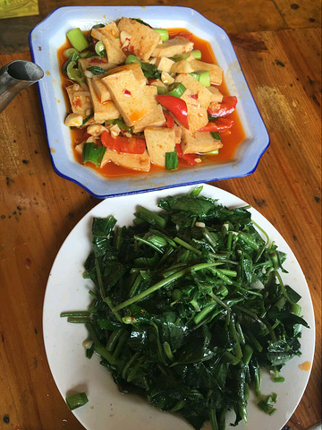 早上一起来洗个澡就坐在阳台外面看看风景,玩玩手机,享受一下生活的惬意,顺便等其他小伙伴们起床~前景后景~随便找的一家土菜馆~凤凰的特色血糕鸭,还可以血糕很好吃。~三下锅,里面就是一些腊肉和香肠。香肠很好吃甜甜的~健康小菜~来自游记四人行~凤凰古城