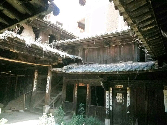 兴义村离通海县城东北12公里处,今早在路口搭上去杨广镇的车,司机说离兴义还有二三公里,即使没车这点路走去也无妨。到杨广终点果然没车去兴义,只有迈开腿走喽,途中遇二位好心的开三轮摩托的村民,分搭二次到达村口。兴义村是一个依山傍水的古村落,村前是杞麓湖,村后是起伏的群山。据说,明代洪武年间,还是一群从南京来的屯垦士兵,看中了这块地方,以山势作为天然屏障,建设了自己的家园。村子所处三县交界的地方,当时土匪猖獗,寨子常遭到袭扰,就把村寨修筑成一个有作战和防御功能的小城堡,村外是高大、牢固的石头寨墙,现在石头寨墙已经看不见了。村内分散的人家用狭窄、隐蔽的巷道串联起来,一旦土匪入侵,这家人就可以迅速进入另一家传递消息,全村人就可以群起而攻之。现在从仅存的老宅的布局中,也依稀可以看到当初的四通八达的巷道,有人把它誉为“乡村城堡”。可惜的是如今村中的大部分老宅已被推倒拆除,仅剩不多的住户,多数人已搬到新盖房子里住了。我穿梭在村舍之间,看到这家的窗户,紧挨着那家的厨房,那家堂屋出来,又是是另一家的后院,一路行来就像进入“八阵图”。仔细观察古老的宅子,可以看到村子曾经的辉煌,遗留着江南带来的建造风格,门檐的木雕,柱子的石雕还栩栩如生。现在能看到保持最完好的是一幢祠堂,据说不拆了。遇上一老奶奶主动带路让我看她家的老屋,很自豪的炫耀自己家曾经的精美。 在一个即将消失的古村中行走,曾经繁荣过、富庶过的老房屋破旧了,被推倒了,乡村城堡迷宫式的建筑布局也将不存在了,如果当地当官的能用点脑子,保留一片典型的村落老宅供人参观游览该有多好!村口还有二排门面很富丽的老房子,还有一座有些年头的楼阁,都诉说着这个曾经繁华过的古村落的故事,但渐渐地终将消声灭迹,没人知晓。