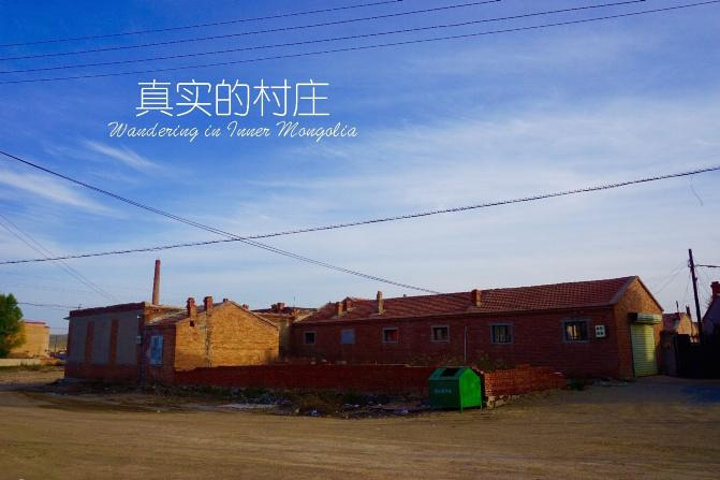这一上可让我大吃一惊,这里沿线的村庄怎么比国道边的差那么多。之前一直以为内蒙的村庄真的像国道边那样,白墙蓝纹,干净整洁。但是这一条小路上的村庄简直让我大跌眼镜,不仅是土砖墙面,样子非常破旧,而且杂乱无章,非常不整。当时我看呆了,也来不及拍照,就问司机师傅是不是内蒙农村都这样。他说所有国道省道上的房子都是为形象工程所做的,经过后期修整、粉刷,真实的农村都是这样,有些甚至更破旧。