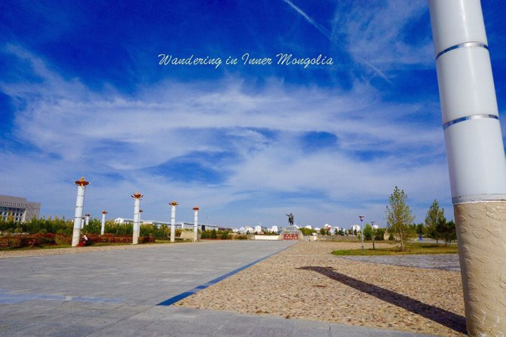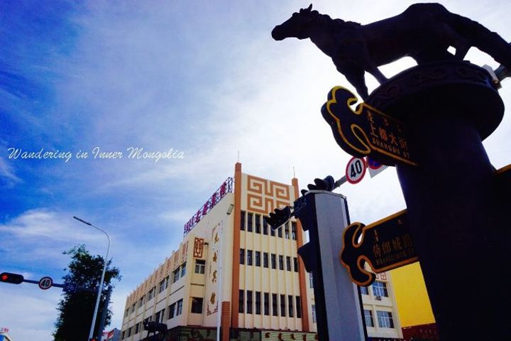 国道207的风景真美啊,尤其是后半段,到了秋天更是金灿灿的一片。顺着国道与省道,我途经了桑根达来和哈毕日嘎,两个名字就很吸引人的小镇。四个小时后我到达了蓝旗,也就是上都镇。与我所认知的小县城不同,这里给我的第一印象是空旷,无论是无人的铁木真广场还是几乎没有乘客的汽车站。我沿着宽阔的马路行走,虽说有些冷清,但路旁的建筑还是挺有特色的。
