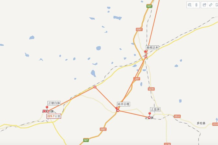 下午两点半,我准时来到路边等着去桑根达来的班车,但到了将近三点车还没来。我心想不对劲啊,我来的时候经过桑根达来就是走这条路的啊。在我等车时,旁边也有一个小货车师傅停在路边等着,他告诉我很有可能大巴从另一个方向去了桑根达来。我心里有些绝望,因为这是最后一班去桑根达来的大巴了,这意味着我今晚的火车票连带明天的都赶不上了。但司机最后一句话给了我一丝希望,他去白旗,可以捎我一程。我查了查,从桑根达来开来的火车都会经过白旗的,于是就放心地上了他的车。