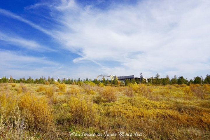 距离两点半出发到桑根达来的大巴车还有一段时间,我在来时看见有省道旁有一座生态园,心想反正没事就走了过去。不同于赛罕塔拉生态园的热闹,这儿只有我一个人。一个人享受着秋意的凄凉与遗弃的废墟,虽孤独,却也惬意。