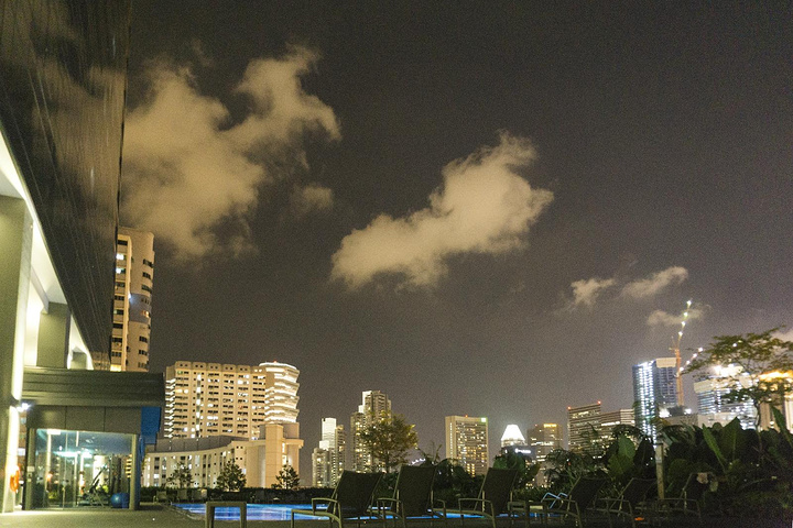 晚上12点的泳池没什么人,只有几个大概是还在读书来度假的少年们在玩耍大水球,真是无忧无虑。