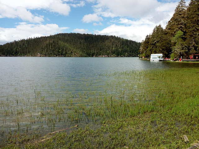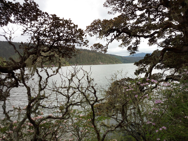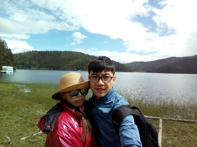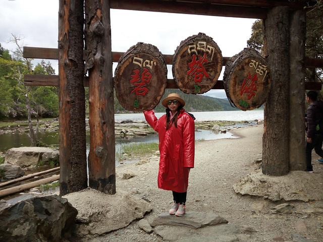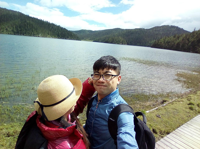 走到这里腿已经有点酸了。属都湖、弥里塘虽然没有步行,站着拍照,也费了些体力,毕竟是高原。所以,在碧塔海是走路还是坐船的问题上,我们的意见依然统一,那肯定是走路,因为我们不想错过这里的每一道风景,最终我们还是徒步了四公里完成了普达措的整个旅行!