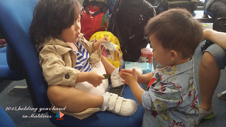 从斯里兰卡到马累只有一小时的航程,斯航的服务还是不错的,看到有小宝宝就会给小宝宝发这种绘本书还有彩色铅笔,排解飞机上的无聊时光。不过对于我们这么小的年龄其实用处不大,都是画画的,他还不会,而且这段航程也是我们用来补觉的