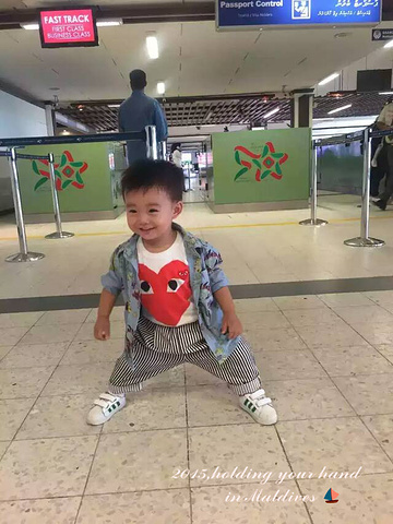 补了一觉小家伙终于恢复精神了,在马累机场,妈妈填入境卡,他和爸爸玩的好开心