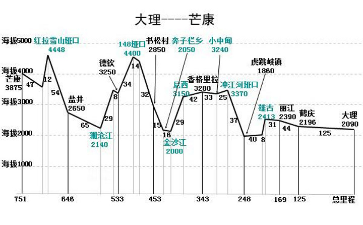 三个海拔图能清楚反应出我们骑行时的海拔变化,骑行进藏的路况基本都是上山、下山、上山、下山循环往复。