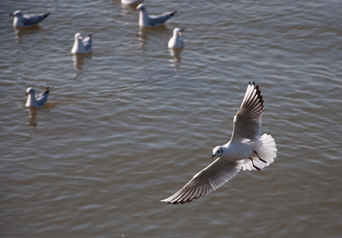 起的有点儿晚,海鸥已经不是那么多了,而且都隔得比较远,这怎么拍啊,我们都没有焦段很长的镜头,侯同学的105最长了也拍不到。