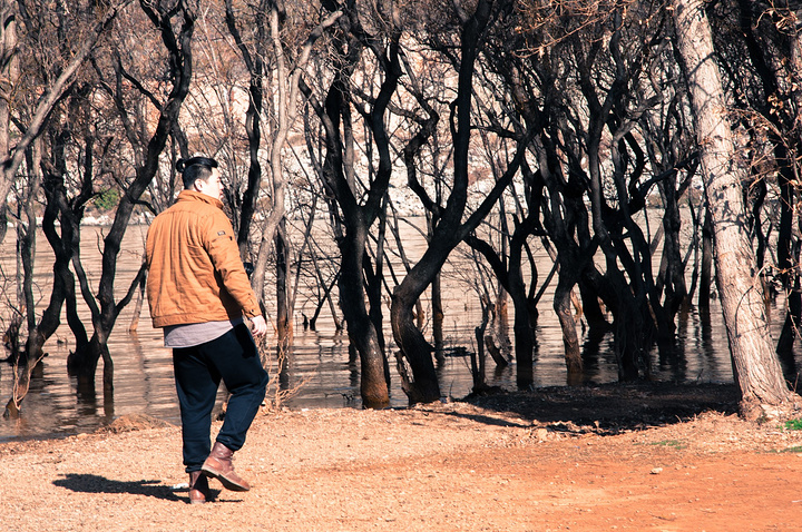 继续沿着洱海边散步,在一片湿地里这张扔掉的椅子显得特别扎眼,当人没这么扎眼,这个夸张了一些。