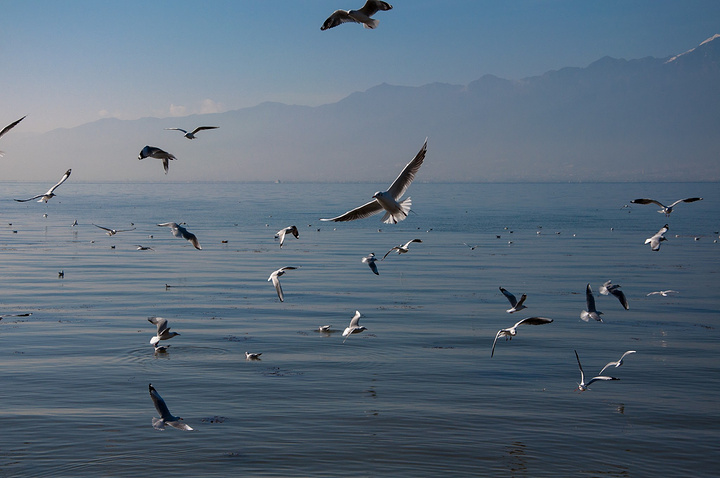 这时候有个白族大妈问喂海鸥吗?