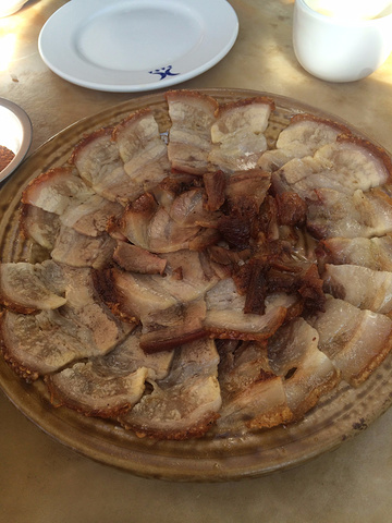中午有去一家忘了叫什么名字的白族菜馆,环境很好,竹林藤椅的,无数只猫。除了两个炒一切系列还有这个,老板说叫烤肉.....我觉得应该不是这两个字。看上去很油腻对吧,粘着粉料其实还可以的。