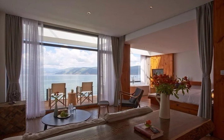 来之前在网上做了攻略,发现双廊跟洱海很近,所以我们在双廊住了一晚就去洱海了,第二晚入住洱海的無舍客栈,880元/晚,重点说下这家客栈很难定到房,到下半年旺季就更加难定,我是提前半个月通过公众微信平台预定的,而且又是两个不同的房型,标间还是让给朋友,我跟十五住大床房,结果一去发现我们这个房型更加有利于观海,当时不禁想偷笑