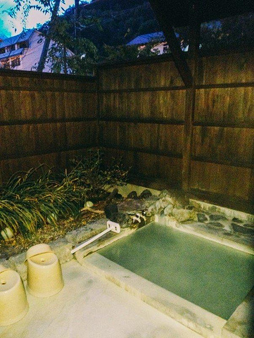 温泉是乳白色,微弱硫磺味,还有半露天的免费贷切风吕,温度70度,受不了需要自己放冷水进去。