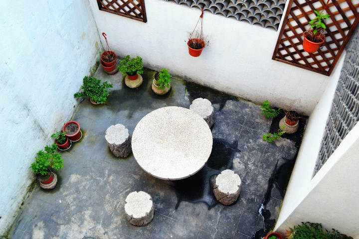 从二楼的房间窗户看下来,能看到一楼那个小院子