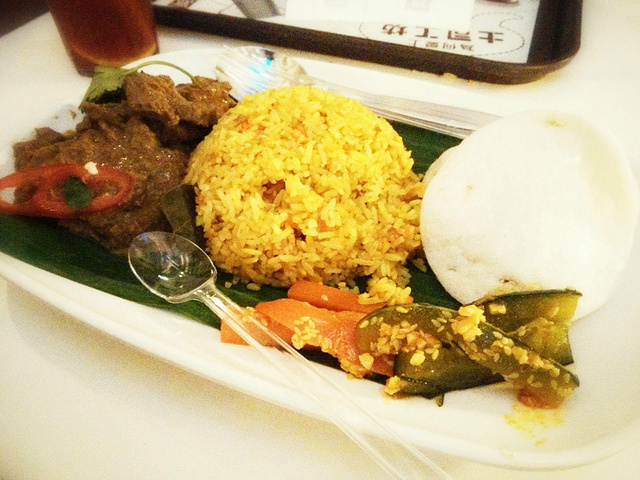 逛太晚了,还好顶上有food court和coffee shop。在其中一家【toast box】解决晚(宵)饭(夜)。好像是新加坡的连锁店哦。巴东牛肉黄姜饭不错吃:)