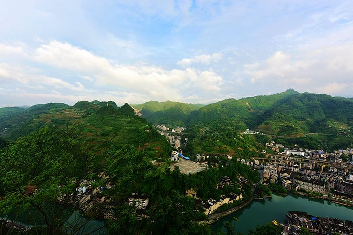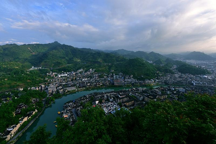 站在石屏山上,一条弯弯的舞阳河,绕城而过!山顶上的亭子是个景观台,可以俯瞰祝圣桥,青龙洞和古城街道一角。视角不同,风味不同。看到古镇的全貌,爬山的艰辛,瞬间觉得值了。