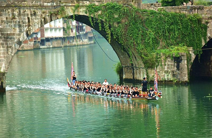 舞阳河上的水上“龙舟达人”正在进行拔河练习,这是苗族保存的一种独特的、优良的传统习俗。据说在赛龙船之前,定要把秧插完、搞好农活,不然,参赛时会给人瞧不起;平日关系中发生一些矛盾而参加比赛的人,一上龙船必须握手言欢,团结一致,场面十分有趣。