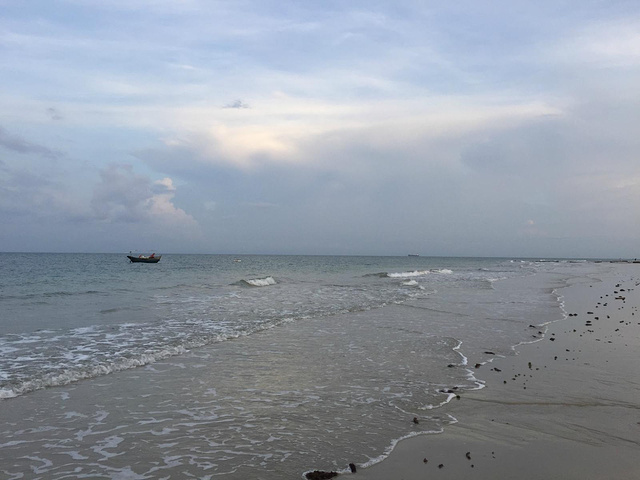 昨晚见那小船位于海中央,今早却已快到岸边了。