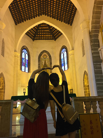 司机接着把我们带到天主教堂,教堂位于盛塘村,该教堂由法国巴黎外方传教会传教士修建,落成于1880年,属于哥特式建筑。用岛上特有的珊瑚石,花了十年时间才建造了这座占地面积近千平方米的教堂。