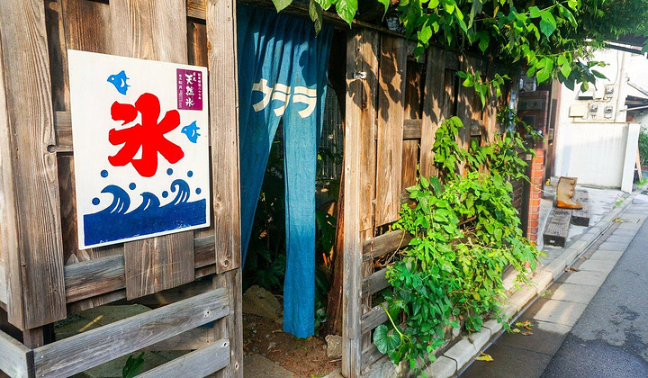 进门沿着石子路走进去,小小的庭院安静古朴,只有三四张木桌,还有一台超大型的复古电风扇,真的是别有一番意境!