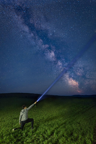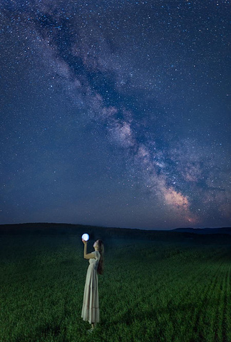 临江十度的深夜,在兵哥相机里看到成功的星空人像。
