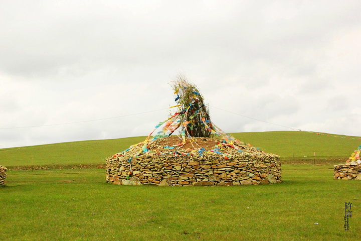敖包,我第一眼看到的想法就是这堆石头挺有意思,我猜也是祭祀用的。后来阳说这是敖包,是用来祭祀的。也给我们讲了他的由来,我瞬间有崇拜了下我们的阳。在这里我就不说敖包的由来了,有大家自己去玩的时候探索。