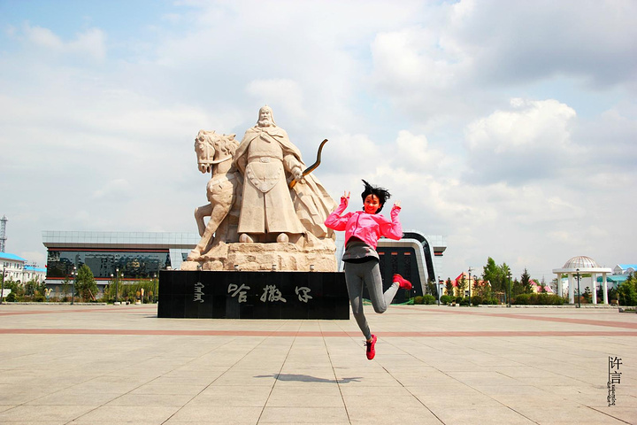 我们的第一天行程算是正式开始。运气还不错,我们来之前海拉尔还在下雨。我们出发了天气变得很是晴朗。我真的没见过这么蓝的天,我就觉得这里特别的干净。干净的我感觉这个世界就像纯净水一样。似乎整个人都跟着清爽了许多。真的就想这样在阳光下面呆着。可是这里的紫外线也是真的强。阳告诉我说快点打个伞什么的,不然明天我就成了土豆了。听了之后我就乖乖的去涂上厚厚的防晒。所以大家一定要带防晒去,不然在回来就有可能连自己的亲妈都不认识了。