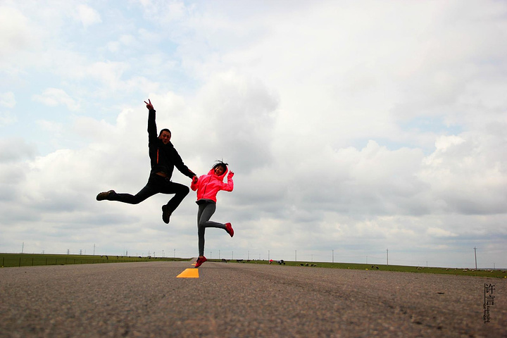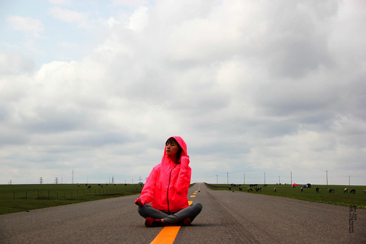 在这笔直的公路上没有一辆车,坐在天与地之间,静静的冥想,感觉能够听到自己的心跳。