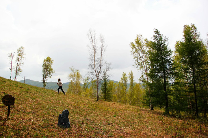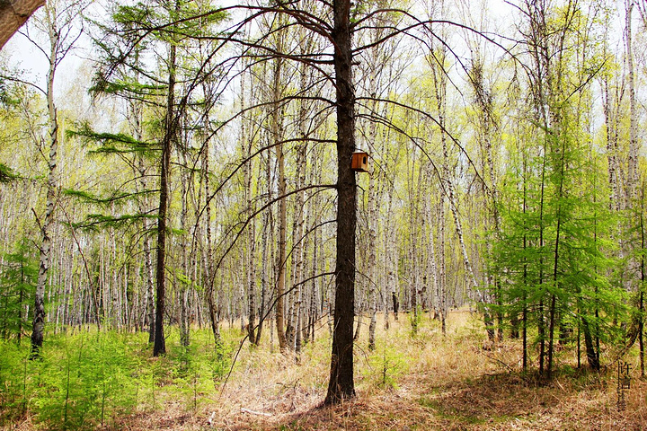 阳带我们去看了哈乌尔河,沿着白桦和松树林登上了山顶,俯瞰蜿蜒曲折的哈乌尔河,美妙烂漫。人工开发的山上除了松鼠已经基本看不到其他动物,但当地人说周边人迹罕至的山地丛林里长年还会有狼、野兔、狍子等野生动物出没。真的想想就兴奋,阳说他们上次带游客在莫尔道嘎穿越森林的时候他们遇到了两只狼,当时还追着他们的车跑呢,这让我也很是兴奋,我问他说我们会不会很幸运的碰上,阳笑笑说,他可不希望在那么的幸运了。