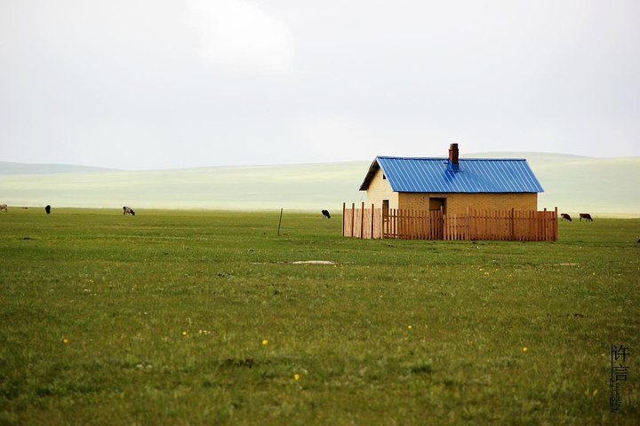 草原上孤独的小房子,和牛群羊群为伴远处的山被雾气笼罩,若隐若现,反而显得的近处的房子更加的突兀。