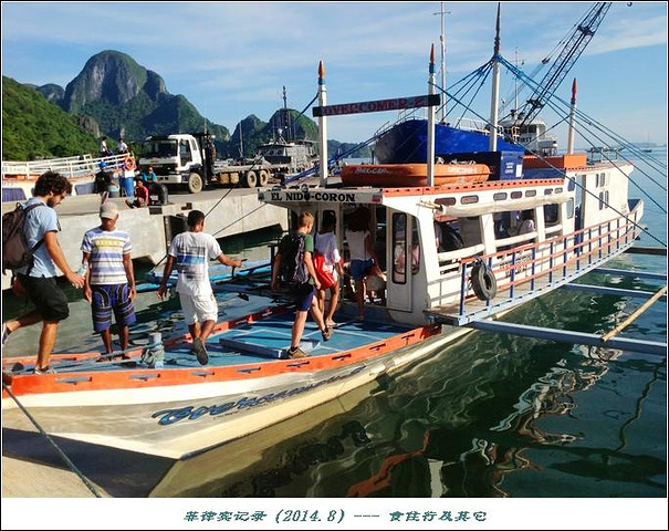 爱妮岛与科隆岛之间往返,只有班船,标准价1800P/人,但是可以找跳岛代理(Island-hopping Agency)还价,我们这次买的大人1600P,小孩1000P。根据天气情况,航程七小时至十小时不等。