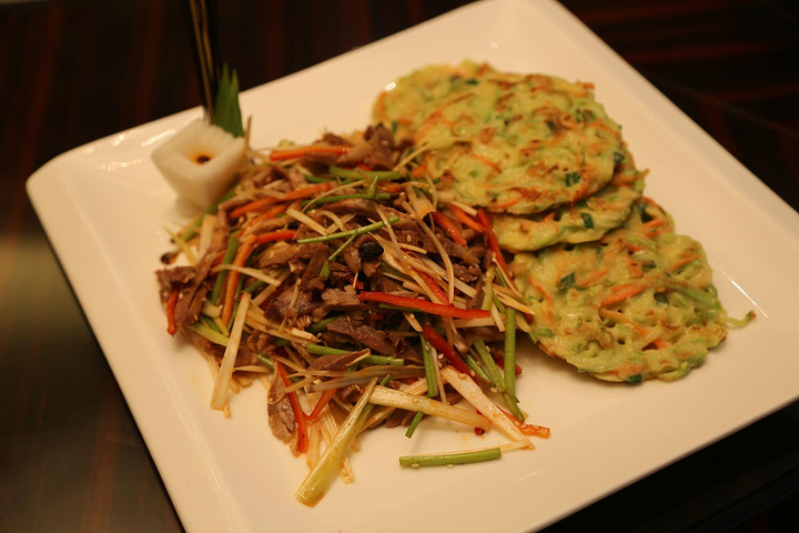 温拌羊肉配茭瓜饼,这个茭瓜饼获得了一致好评,看着其貌不扬的味道赞的很。