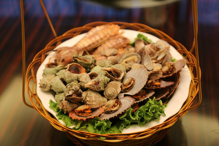 菜品以胶东地区特产海鲜为主,加以创新,最喜人的就是海鲜篮,新鲜的皮皮虾海螺蛤蜊扇贝满满当当,看着就欢喜。