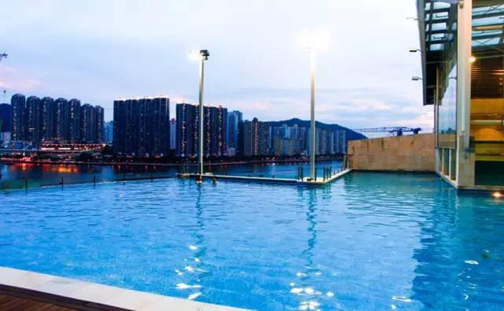 在酒店的9层是个露天的无边泳池和室内泳池。