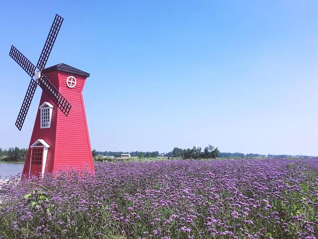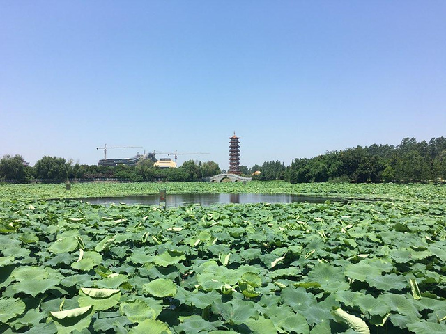 章华台对面有一大片荷花池、一大片薰衣草花海,还看到有人在拍婚纱照。在网上搜了一下,这个地方叫章华湿地花海景区,计划投资2.8个亿打造一个四季看花的美景,网上有景区加龙虾的套餐可以团购178块,购买以后直接扫描了二维码进入了景区。