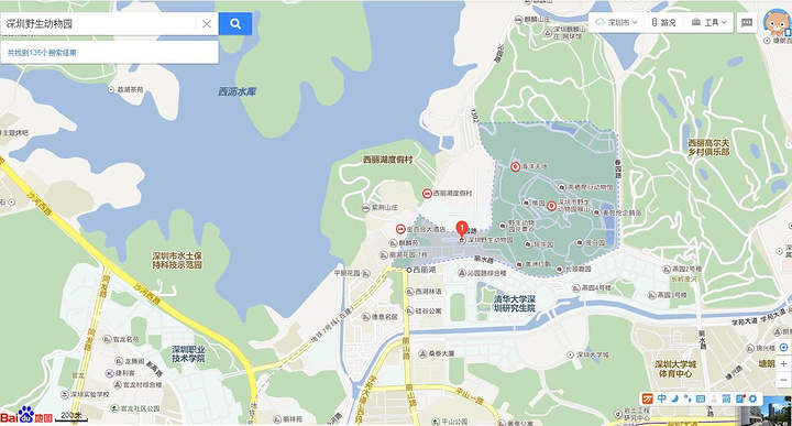 先看看地图,深圳野生动物园位于深圳市南山区北部,公交车有226路/104路/B796路/203路, 还有地铁7号线(建设中