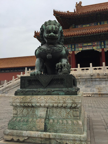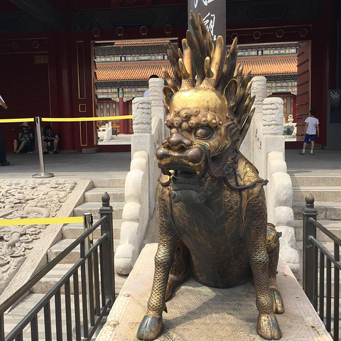 太和殿的屋脊走兽很有讲究的哦!全国独一无二,十只小兽,还有这只狮子是雌的哦,因为她有只狮宝宝😄