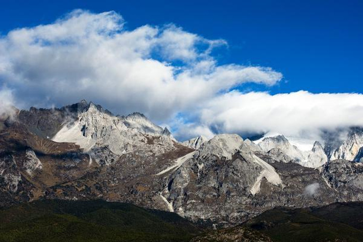 玉龙雪山位于丽江市玉龙纳西族自治县境内,共有13座山峰,山势连绵起伏,似银龙飞舞,故得名玉龙雪山。其主峰扇子陡海拔5596米,是北半球纬度最低的雪山。