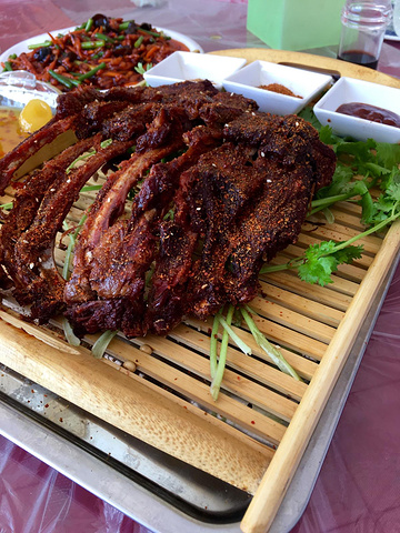 出了高速出口,已经将近12点,就在出口附近一个“在路上饭庄“吃的午饭,点了沙棘雪梨球、羊排、干煸豆角和鱼香肉丝。第一次知道沙棘这个东西的存在,这份甜点很好吃,口味特别、口感冰凉。来了草原就要开始吃大肉,羊排的味道也很好,推荐。