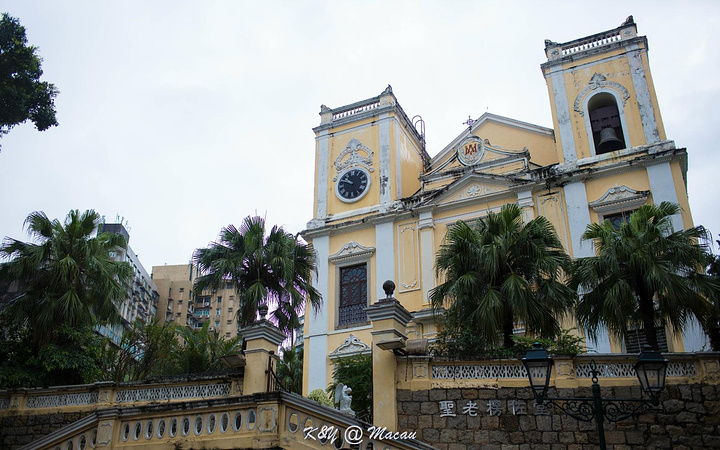 而据教堂内一石刻上的碑文,第一次重修应在1618年,至于现时教堂的规模则是在1844年改建后而成的。圣老楞佐教堂建筑高耸,气势逼人,欧洲古典的风格带有点巴洛克的味道;由于整个建筑并非坐落于前地,或者出于某段景的位置,所以为了突出整个教堂的存在,并要作为一个住宅区域的中心,于是在教堂的下面,加了有近一层高的高台,使它显得更加挺拔显眼,我觉得这也是她气势逼人的一大因素!