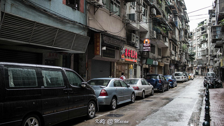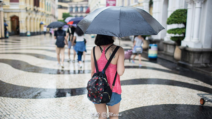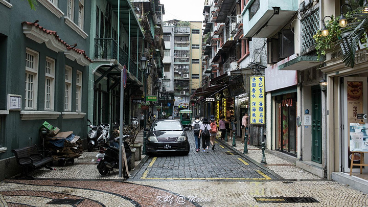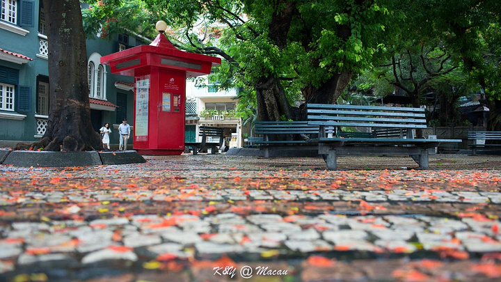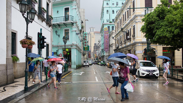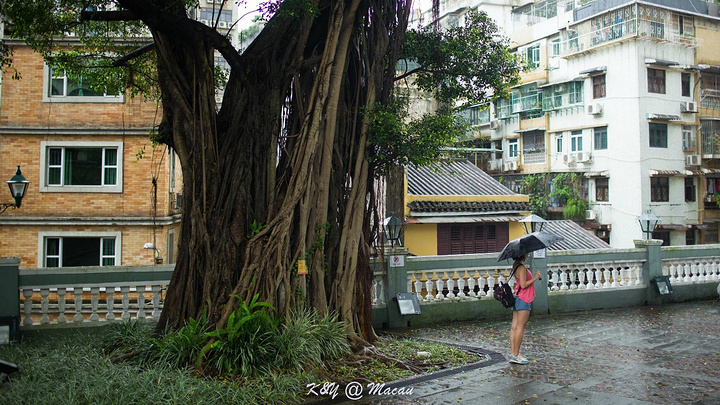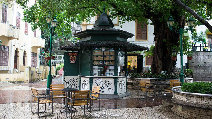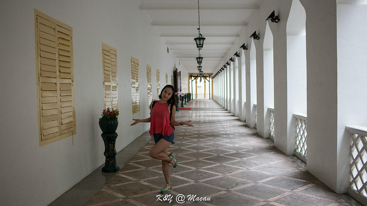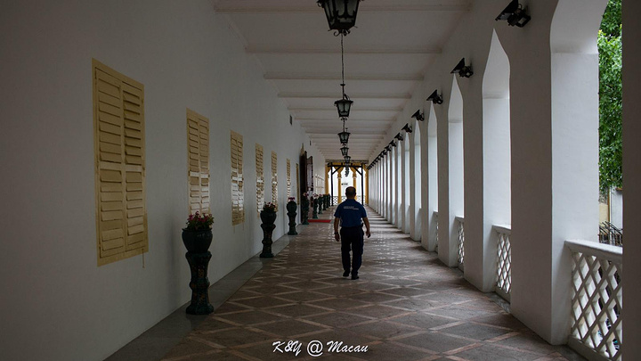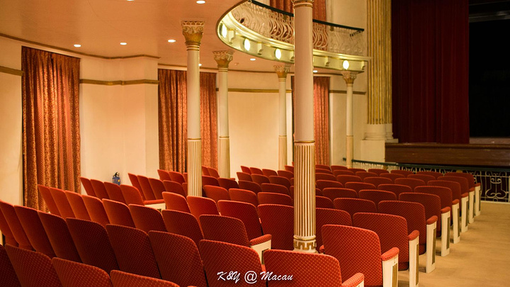 岗顶剧院,可能名字比较陌生,但是提到《蝴蝶夫人》虽说不是人人都看过,但是名字肯定大家都耳熟能详,这里就是著名的歌剧《蝴蝶夫人》举行亚洲首演的地方。位于岗顶前地的岗顶剧院,建筑长41.5米,宽22米,中式坡屋顶的屋脊高为12米,屋檐高为7.5米;建筑设计为新古典希腊复兴风格,平面作纵向布局,圆形的观众席前后布置了前厅及舞台,两侧是可供休息的长廊,长廊上设有楼梯直达二楼观众席,此观众席为一月牙形,依靠楼下10条排列成弧线的柱子支撑着。岗顶前的路是用石仔铺成的海浪图案,据说每块地砖均是由葡萄牙运来的,不知真假..